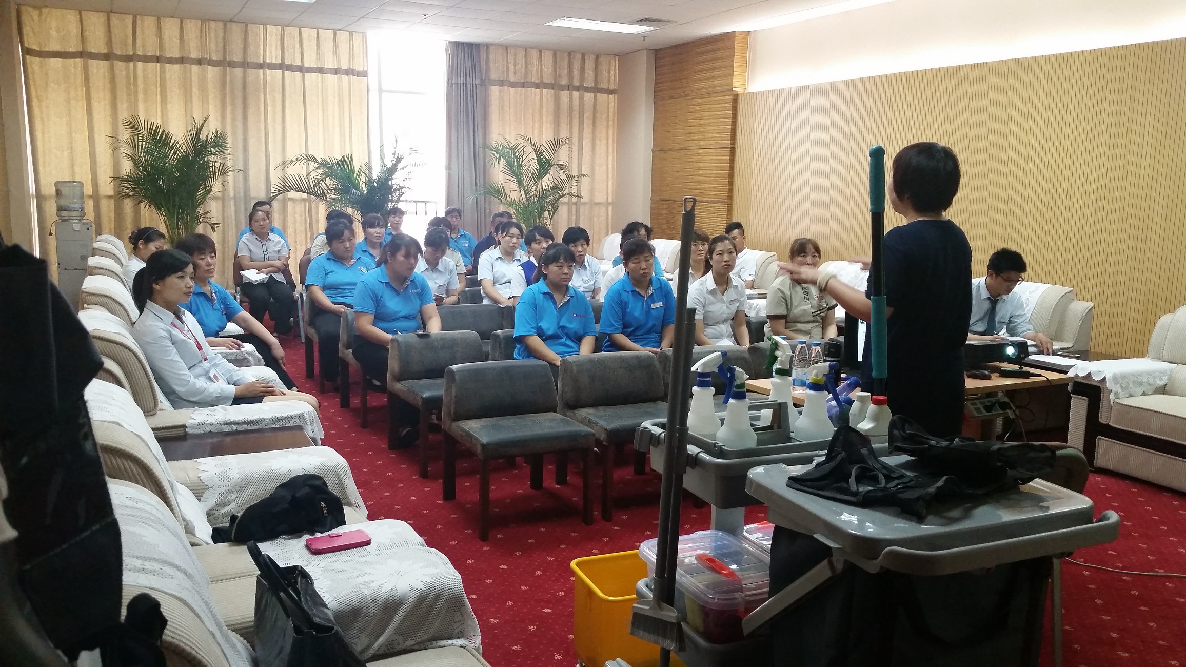 在“用心服務(wù),因您而變”的服務(wù)理念指引下,我們對服務(wù)、對基礎(chǔ)保潔服務(wù)的認(rèn)識(shí)不斷擴(kuò)充著、變化著。當(dāng)下的保潔作業(yè)與傳統(tǒng)清潔模式有了質(zhì)的不同。東區(qū)事業(yè)部緊跟步伐,與國邦清潔設(shè)備公司聯(lián)合為所轄項(xiàng)目保潔負(fù)責(zé)人、保潔領(lǐng)班帶來了一場別開生面的培訓(xùn)——保潔精細(xì)化管理和無水作業(yè)實(shí)操培訓(xùn)。
