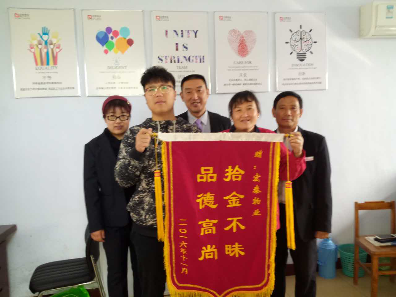 公司山東財(cái)經(jīng)大學(xué)東方學(xué)院項(xiàng)目的保潔員畢研紅女士在5號(hào)教學(xué)樓5308教室打掃衛(wèi)生時(shí),在桌底發(fā)現(xiàn)一個(gè)錢包,畢阿姨沒有據(jù)為己有,而是主動(dòng)上交,積極尋找失主。錢包里有現(xiàn)金,四張銀行卡,一張校園卡以及一張身份證。