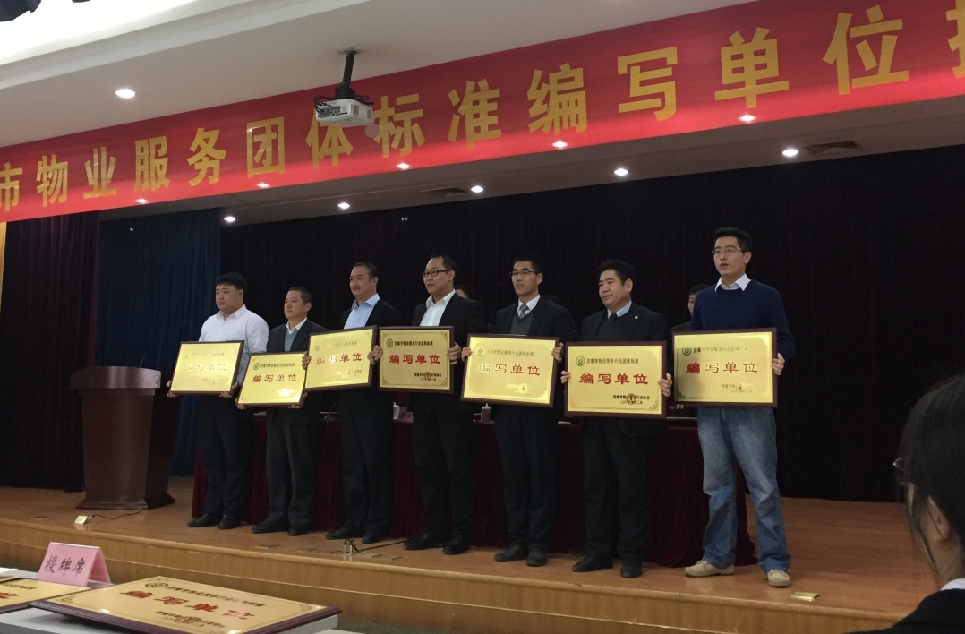 12月30日上午9點,濟南市物業(yè)服務(wù)團體標準編寫單位授牌儀式在房產(chǎn)大廈四樓會議室順利舉辦。質(zhì)監(jiān)局馬曉鷗科長、市局物業(yè)處黃安平處長、協(xié)會張平會長、趙明秘書長、公司總裁韓玉峰,及其他各企業(yè)負責人出席了此次授牌儀式。