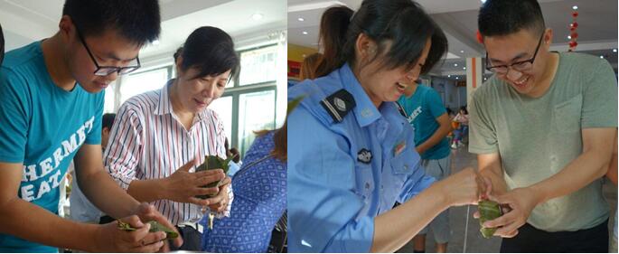 在大家的共同努力下,八百多個粽子赫然擺在了大家的眼前。中午十一點粽子出鍋,由勤工儉學(xué)的同學(xué)負(fù)責(zé)分發(fā),吃著自己親手包的粽子,別有一番滋味。