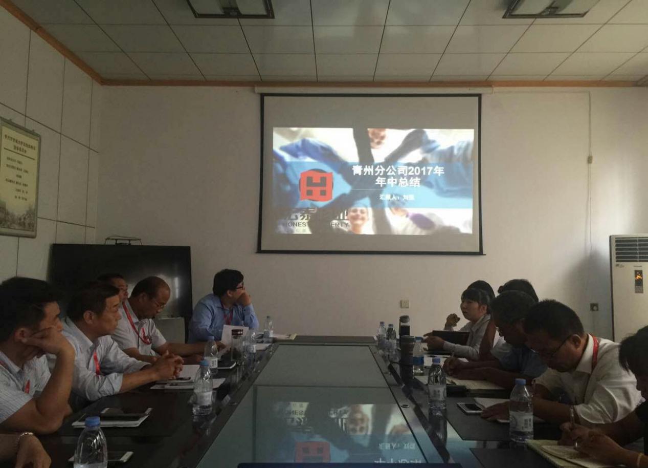 2017年7月28日下午13:30分,青州分公司在青州古城指揮部會(huì)議室召開了2017年度半年工作會(huì)議,會(huì)議由青州分公司副總經(jīng)理劉強(qiáng)主持。分公司全體成員及各項(xiàng)目經(jīng)理負(fù)責(zé)人及專員以上人員共計(jì)22余人參加了此次會(huì)議。