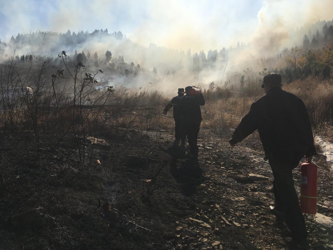 11月15日11點20分,保安員發(fā)現(xiàn)蓮花山殯儀館西山林發(fā)生火災,情況緊急且明火嚴重,經(jīng)與甲方領(lǐng)導匯報火災情況后,立即報警,并迅速組織可調(diào)動的所有保安人員帶著20多具滅火器直奔現(xiàn)場。由于山體茅草較高,風勢較大,火勢向殯儀館方向延伸。在消防人員未趕到的同時,咱們的保安人員已從山腳趕到的山腰開始滅火,經(jīng)過10多分鐘奮戰(zhàn),3輛消防車才逐漸趕到現(xiàn)場,并從山腰火勢嚴重區(qū)域進行大規(guī)模的滅火,經(jīng)過20分鐘的撲救,山體明火已經(jīng)消失,只剩黑煙。