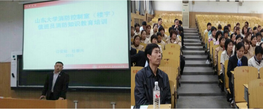 為貫徹落實市、區(qū)政府消防安全工作,讓值班員懂得如何預(yù)防及應(yīng)對火災(zāi)以及如何以正確的方式逃離火災(zāi)現(xiàn)場,2015年4月22日山大中心校區(qū)樓宇部攜手公安處進行值班員消防安全知識教育培訓(xùn)。
