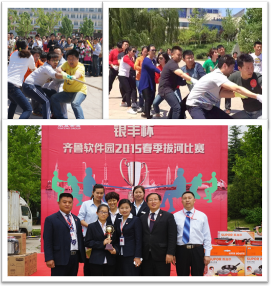 為豐富園區(qū)企業(yè)的文化生活,完善園區(qū)精神文明建設(shè)。2015年5月12日至14日由齊魯軟件園發(fā)展中心及山東宏泰物業(yè)發(fā)展有限公司聯(lián)合銀豐集團(tuán)在齊魯軟件園下沉廣場舉辦了一場別開生面的拔河比賽。園區(qū)企業(yè)紛紛以極大的熱情參與到本次活動當(dāng)中。
