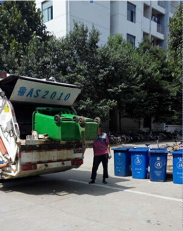 自2015年6月1日起,齊魯工業(yè)大學(xué)項(xiàng)目物業(yè)與長(zhǎng)清環(huán)衛(wèi)局合作,清運(yùn)校園內(nèi)垃圾桶垃圾。試運(yùn)行一個(gè)星期以來(lái),我物業(yè)人員每天帶領(lǐng)垃圾清運(yùn)車在校園內(nèi)熟悉預(yù)定的路線,以及各個(gè)垃圾桶的停放站點(diǎn)。每天清理垃圾2遍,500余桶,共計(jì)20多噸。使校園內(nèi)垃圾安全快捷的運(yùn)出校園,大大提高了我物業(yè)的工作效率,創(chuàng)建了學(xué)校整潔舒心的學(xué)習(xí)環(huán)境。