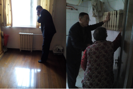 項(xiàng)目派出客服部經(jīng)理與工程部經(jīng)理于11月19日入戶拜訪小區(qū)孤寡獨(dú)居老人,一共拜訪了小區(qū)10余戶孤寡老人,工程部經(jīng)理攜溫度測量儀器現(xiàn)場測量老人戶內(nèi)供熱溫度,并對各房間溫度不均、不熱的進(jìn)行恒溫調(diào)試,告知老人注意事項(xiàng);客服部經(jīng)理與老年人溝通,及時掌握老年人的健康狀況,并告知老人,你們的孩子不在身邊,我們物業(yè)公司的每位員工就是你們的親人,你們盡可將生活上的需求告訴我們,便于我們?nèi)蘸筇峁┫鄳?yīng)的服務(wù)。
