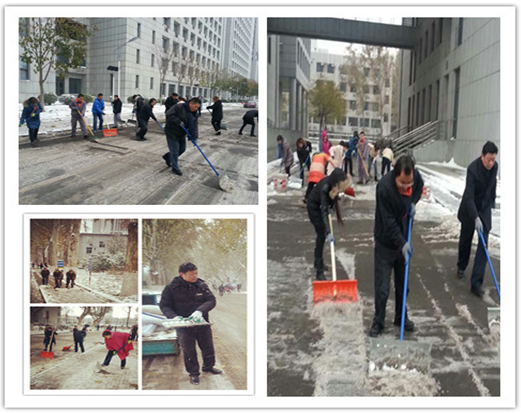 經(jīng)過近三個小時的努力,大家清掃了校園個主干道路面和校內(nèi)各個樓門口人行道的積雪,有力保障了校園交通暢通和師生員工的出行安全。