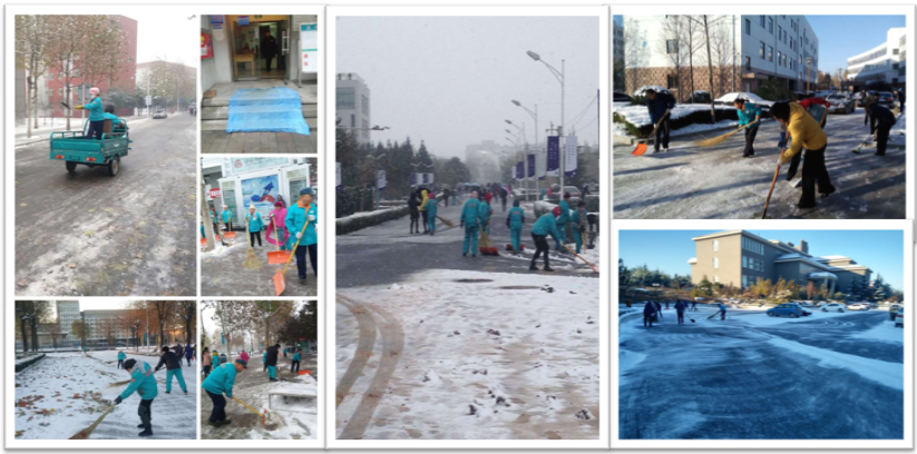 凜冽的寒風(fēng)、-10℃的低溫、結(jié)冰的路面,這一個(gè)個(gè)困難擺在了我們面前,使清掃工作變得艱苦起來(lái)。員工的手和臉被凍得通紅,然而,這一切絲毫沒(méi)有影響大家的勞動(dòng)熱情,各項(xiàng)目員工團(tuán)結(jié)協(xié)作、井然有序,分工明確,干得熱火朝天,用大家的汗水讓冰雪消融。