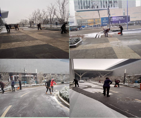 雪花伴著寒風(fēng)吹打著每位工作人員,項(xiàng)目經(jīng)理邢懷超更是親自上陣,額頭已然布滿(mǎn)汗水,大家雖然手腳凍得冰涼但能夠保障業(yè)戶(hù)的出行安全,一切都是值得的。為保證道路不出現(xiàn)結(jié)冰的現(xiàn)象,我項(xiàng)目員工增加巡視頻率,根據(jù)地面情況及時(shí)清理大廈門(mén)廳前以及大廈周?chē)姆e雪,潑灑工業(yè)鹽及除雪劑,以保證大廈進(jìn)出人員的人身安全。