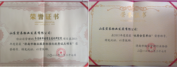 此次會(huì)議,韓總當(dāng)選為第三屆理事會(huì)副會(huì)長(zhǎng),張總當(dāng)選為物業(yè)服務(wù)標(biāo)準(zhǔn)化技術(shù)委員會(huì)委員。公司被評(píng)為2015年度“優(yōu)秀會(huì)員單位”,公司管理項(xiàng)目龍奧九號(hào)、中國(guó)鐵建國(guó)際城、山東省農(nóng)科院被授予“濟(jì)南市物業(yè)管理優(yōu)秀住宅小區(qū)(大廈/工業(yè)園)”稱號(hào);公司齊魯軟件園信息通信技術(shù)研究院項(xiàng)目被授予“濟(jì)南市物業(yè)服務(wù)標(biāo)準(zhǔn)化優(yōu)秀試點(diǎn)項(xiàng)目”稱號(hào)。