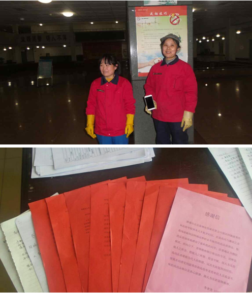 將丟失的錢(qián)包手機(jī)交還給丟失的同學(xué)時(shí),同學(xué)一邊感謝的說(shuō)著話(huà)語(yǔ),一邊也在責(zé)怪自己的粗心,滿(mǎn)懷感謝的將一份鮮紅的感謝信送至值班室,并且當(dāng)面感謝了我們的保潔員工。